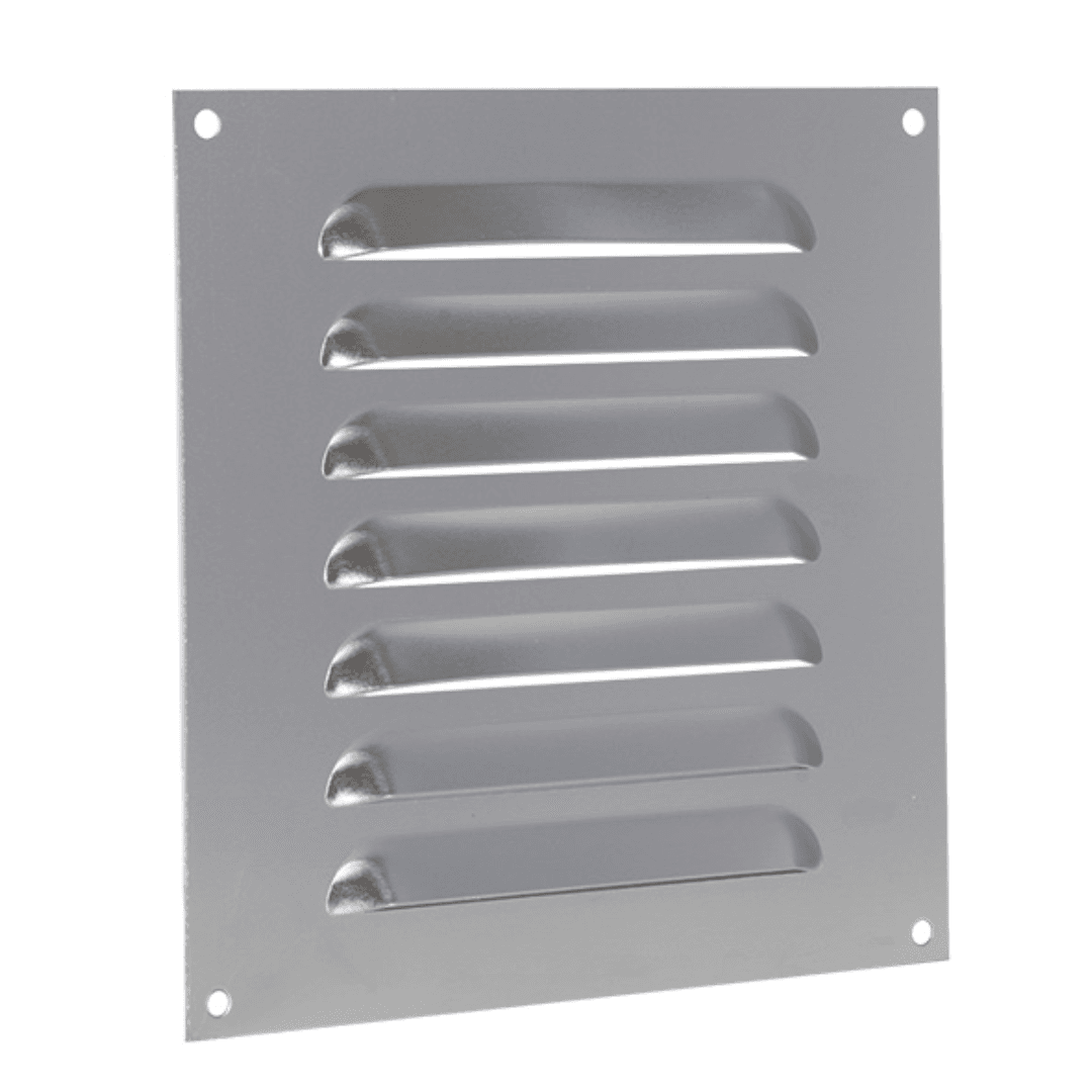 Alu schoepenrooster vlak model 150x150mm, kleine schoepen, blank