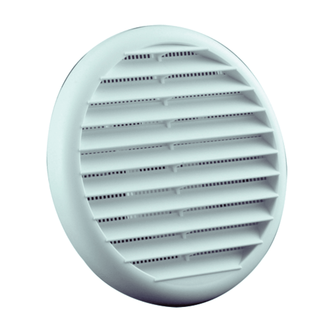Kunststof schoepenrooster rond met gaas Ø125mm wit