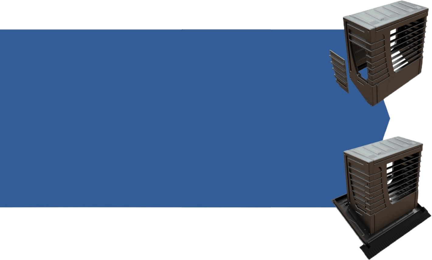 In het streven om ons fossiele energieverbruik te verminderen is de warmtepomp een populaire keuze. Voor de bewoner is, naast geluidsoverlast, de omvang door plaatsing in de tuin of in de schuur, een struikelblok. De Decorio Luchtwarmtepompbehuizing 30°-55° biedt de oplossing. Deze behuizing staat als een schoorsteen op het dak, beschermt de luchtwarmtepomp tegen alle weersinvloeden en zorgt bovendien voor geluidsvermindering door plaatsing op het dak.