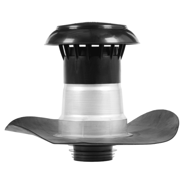 Platdak ontluchting dubbelwandig met zwarte kunststof kap Ø 50-60mm