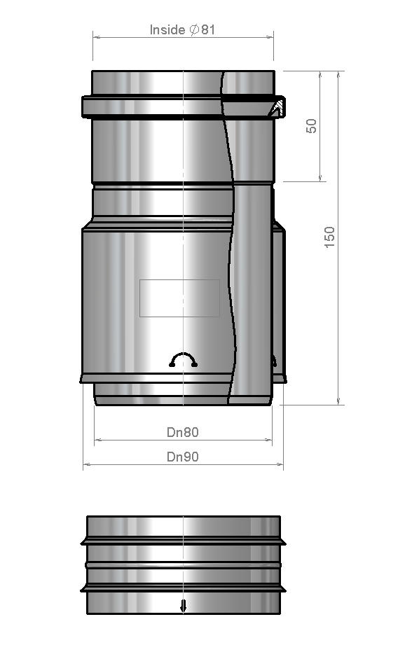 - Buitendiameters van 90 mm en 80 mm maken het mogelijk om verschillende rookgasbuizen eenvoudig te koppelen.