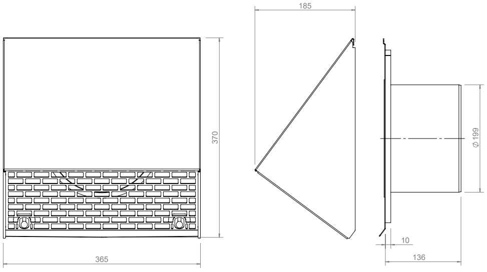 Een buitenrooster met schuine kap is een gevelrooster dat wordt gemonteerd op de buitenmuur bij de uitmonding van een ventilatie- of afvoerkanaal. De schuine kap bovenop het rooster beschermt de opening tegen regeninval, terwijl de lucht vrij kan in- of uitstromen via de onderzijde en zijkanten. Dit type rooster wordt veel gebruikt bij de aansluiting van afzuigkappen, wasdrogers, mechanische ventilatie en soms bij rookgasafvoer op de gevel. Het rooster is er in diverse diameters (meestal 100 tot 200 mm) en materialen, en vormt de nette afsluiting van het kanaal aan de buitenzijde van je woning.