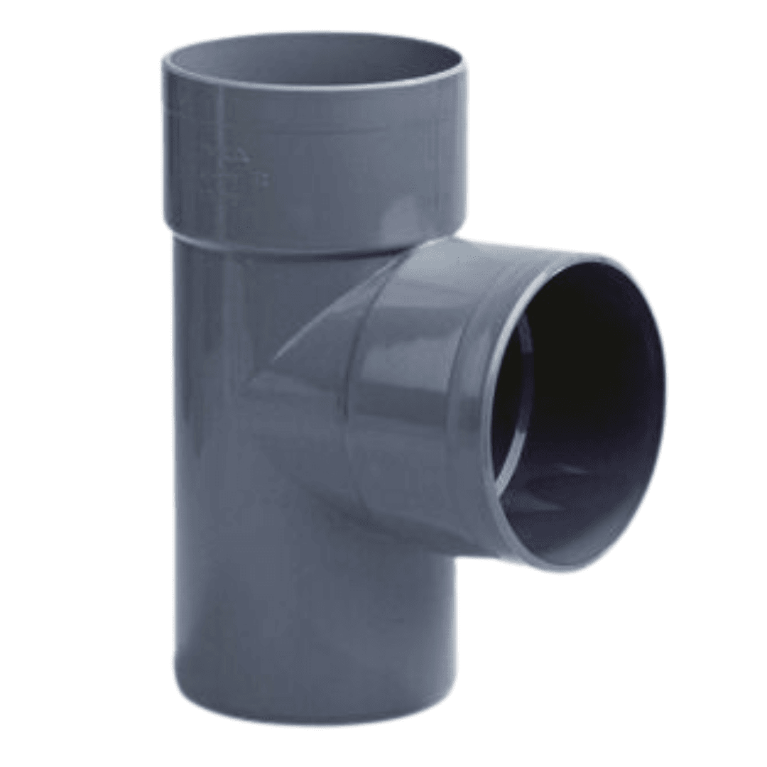 PVC T-stuk 75mm 2x lijmmof/ 1x spie 87,5° grijs