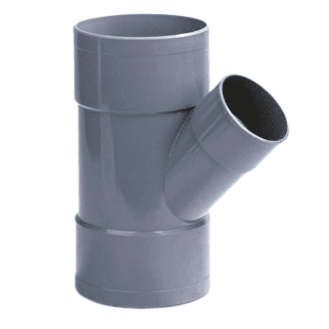 PVC Verloop T-stuk 160x110mm 3x lijmmof 45° grijs