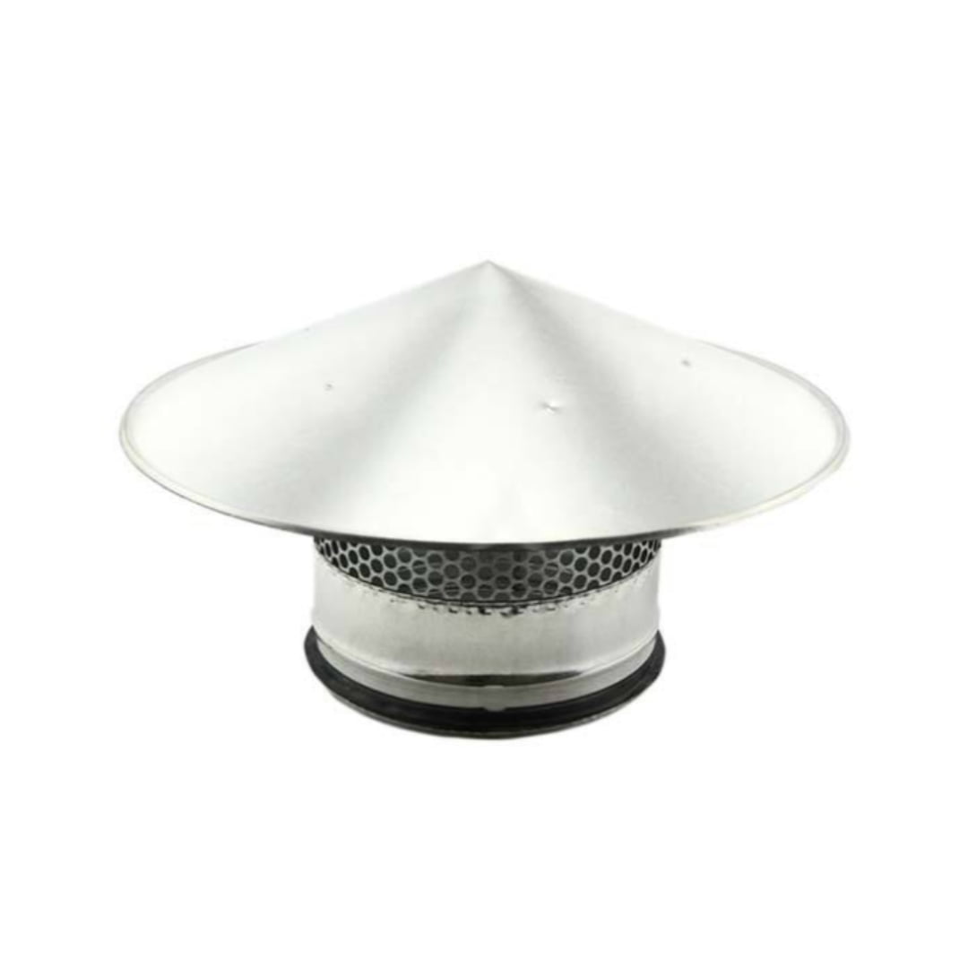 Regenhoed met gaas Ø 100mm. De regenhoeden van Econox zijn speciaal ontwikkeld voor ventilatiesystemen en zijn direct aan te brengen op spirobuizen. De regenhoed voert vervuilde lucht waaronder rookgas, koolstofmonoxide, radon en thoron af wat de kan…