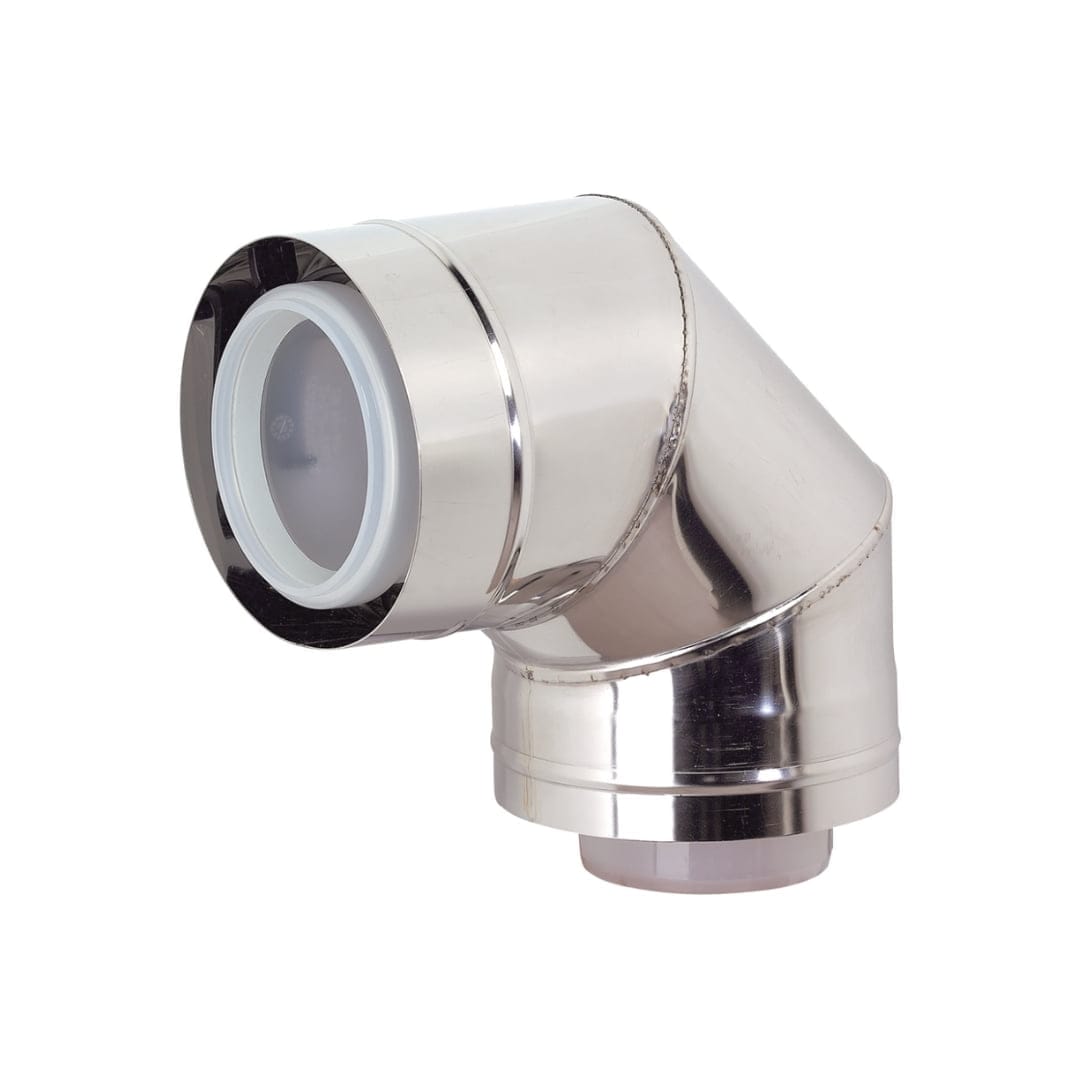 Bocht voor het Rolux Buitenwandsysteem. Het buitenwandsysteem heeft een mooie RVS afwerking aan de buitenzijde, geen corrosie of ijsvorming, UV bestendig en eenvoudige montage.