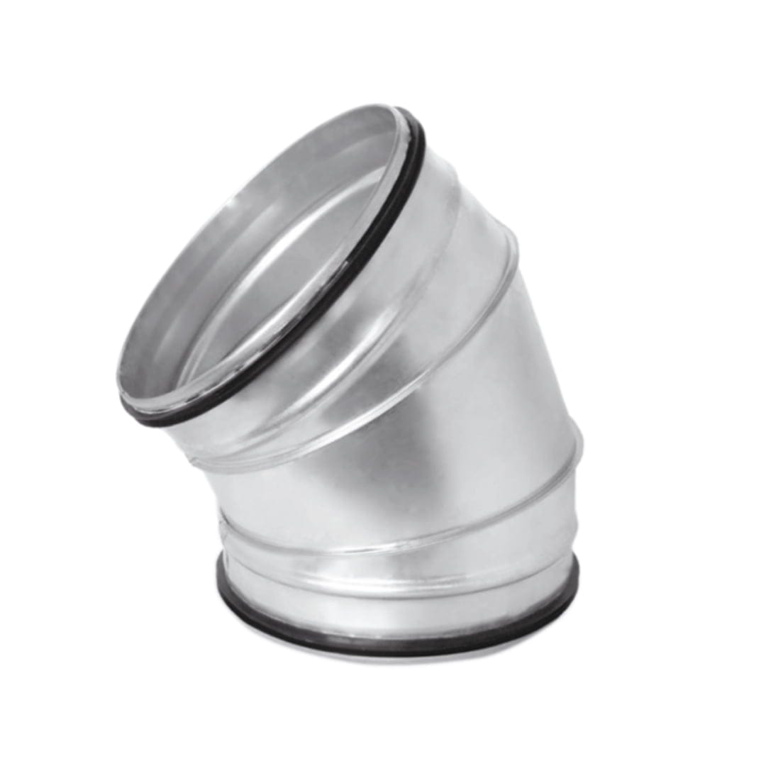 Segmentbocht 45° diameter 450mm De gesegmenteerde bocht van 45° is het ideale verbindingsstuk tussen twee spirobuizen van 450 mm als je een ventilatiekanaal in een hoek wilt aanleggen. Materiaal en specificaties Deze bocht is gesegmenteerd uit send…
