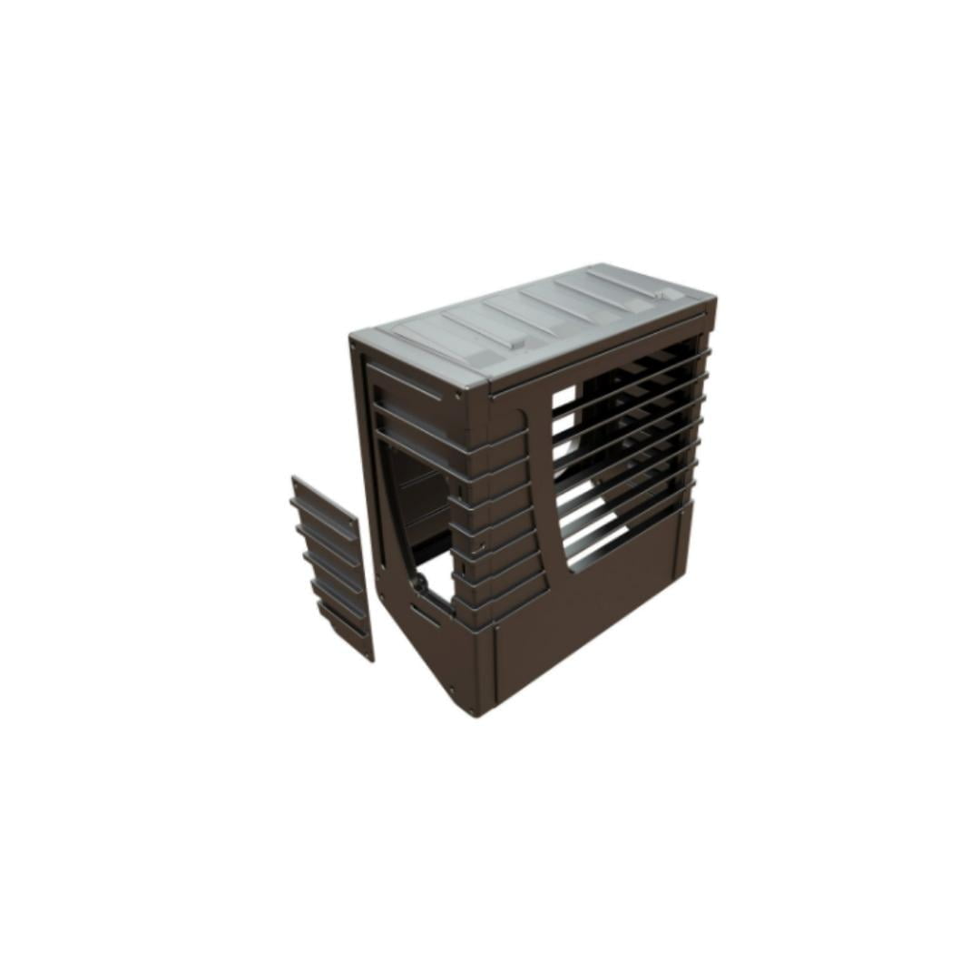 De Ubbink Decorio Luchtwarmtepompbehuizing 30-55 montageplank is geschikt voor de meest gangbare luchtwarmtepompen. In het streven om ons fossiele energieverbruik te verminderen is de warmtepomp een populaire keuze. Voor de bewoner is, naast geluidsoverlast, de omvang door plaatsing in de tuin of in de schuur, een struikelblok. Ubbink Decorio Luchtwarmtepompbehuizing 30-55 is de oplossing. Deze behuizing staat als een schoorsteen op het dak, beschermt de luchtwarmtepomp tegen alle weersinvloeden en zorgt bovendien voor geluidsvermindering door plaatsing op het dak.