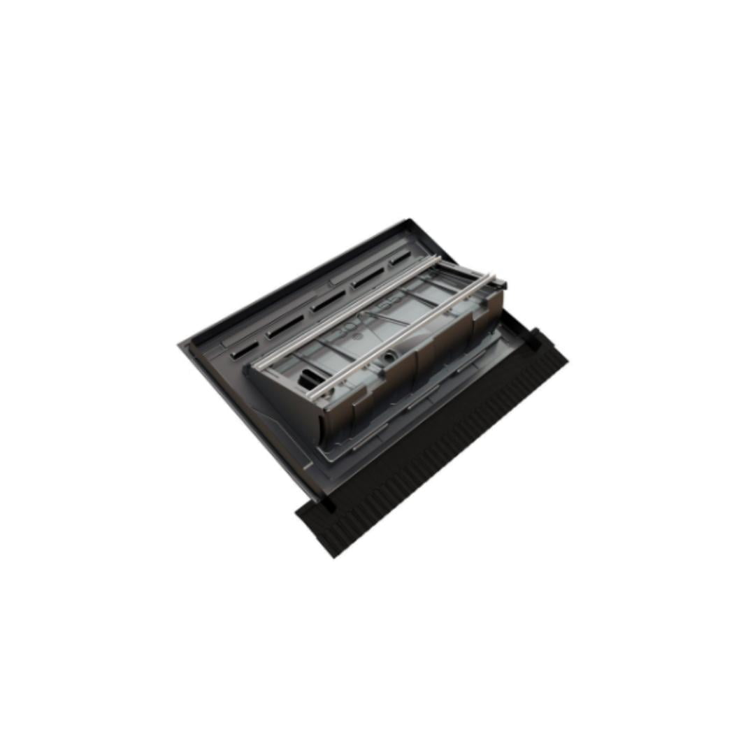 - Geïntegreerde voorziening voor afvoer van smeltwater, doorvoer voor thermische leidingen en kabels van zonnepanelen