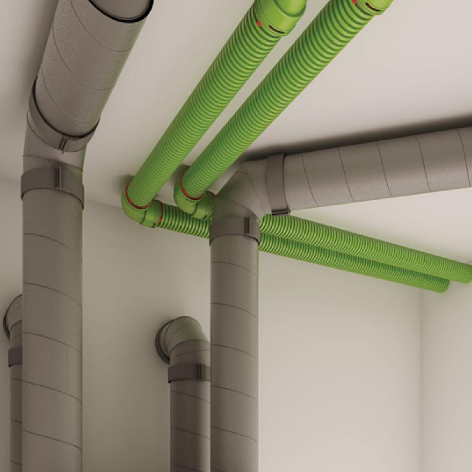 Condensvorming aan de binnen- of de buitenkant van de kanalen kan optreden als de lucht in het kanaal kouder is dan de omgevingslucht of omgekeerd. Het is dus erg belangrijk om in die gevallen goed geïsoleerde leidingen te gebruiken. De hoge isolatiewaarde van de Ubbink WTW bocht 90 graden 160mm voorkomt condensvorming en minimaliseert ook de warmteverliezen.