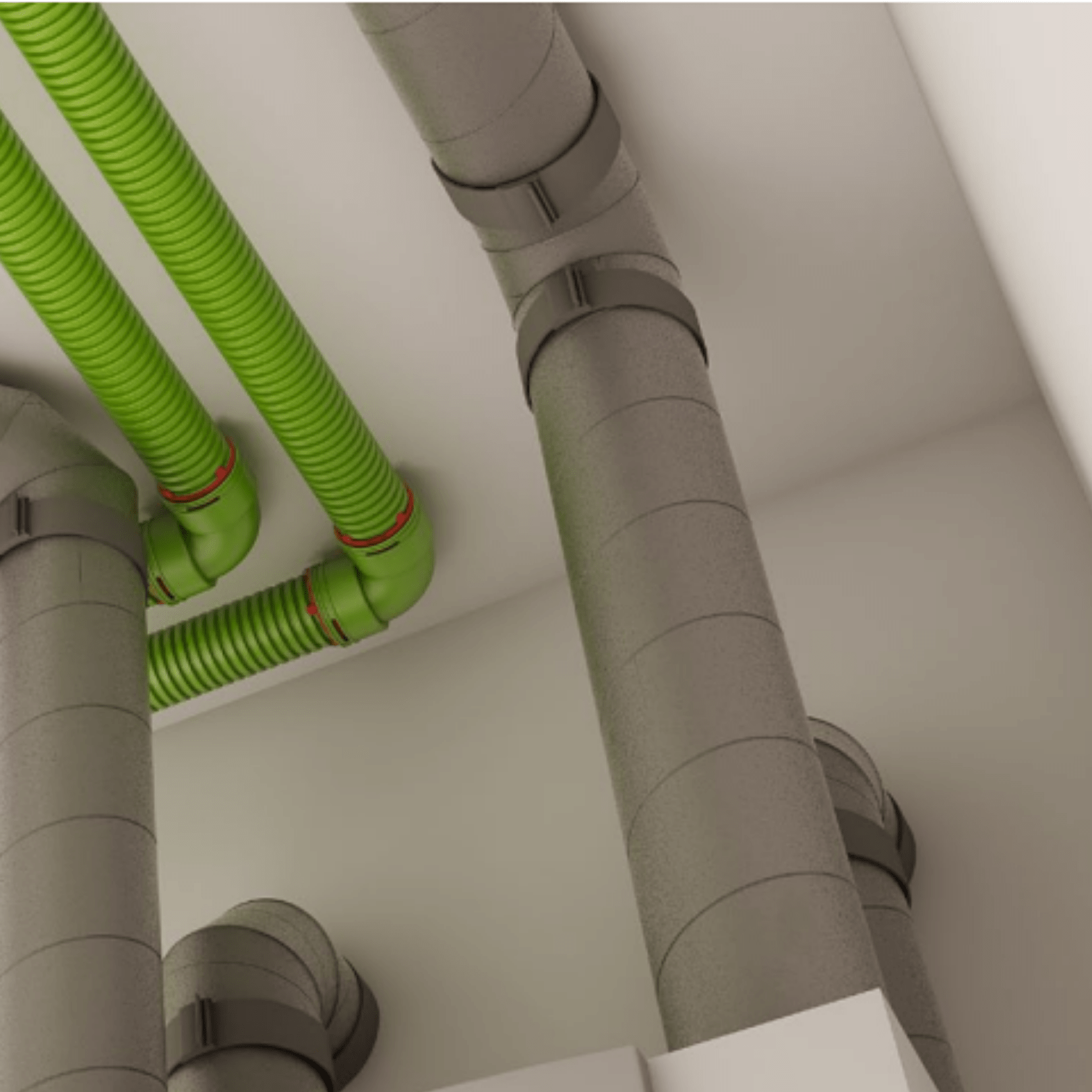 Condensvorming aan de binnen- of de buitenkant van de kanalen kan optreden als de lucht in het kanaal kouder is dan de omgevingslucht of omgekeerd. Het is dus erg belangrijk om in die gevallen goed geïsoleerde leidingen te gebruiken. De hoge isolatiewaarde van de Ubbink WTW bocht 90 graden 200mm voorkomt condensvorming en minimaliseert ook de warmteverliezen.