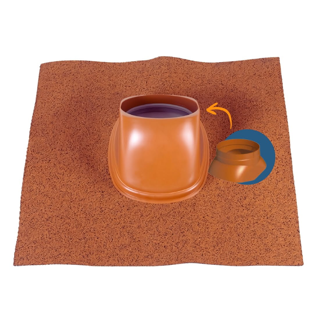 De Ubbink Ubiflex Dakdoorvoerpan 131mm 500×500 geleverd exclusief schaal, in de kleur terracotta. Ook is deze voorzien van Ubiflex loodvervanger dit zorgt voor een enorm montagegemak omdat je gewoon de bestaande pannen over het Ubiflex gedeelte van de pan heen kunt leggen, hierdoor heb je bijvoorbeeld geen sneldekpan meer nodig.