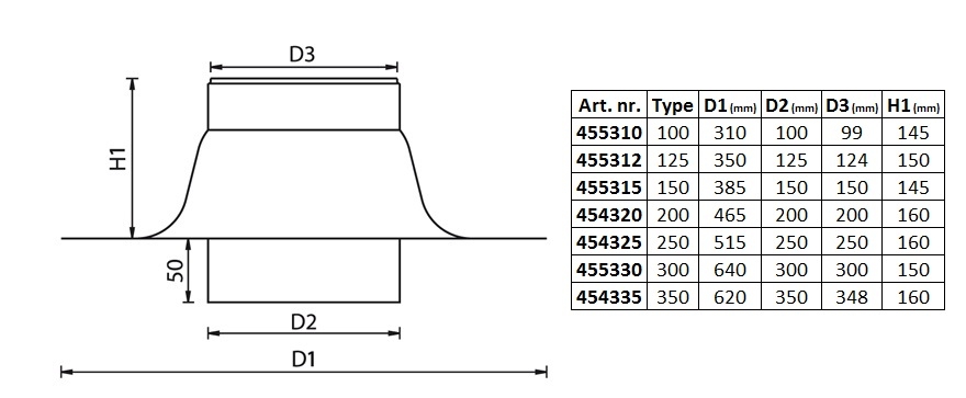 Een plakplaat zorgt voor een water- en luchtdichte afsluiting van het plat dak. De dakdoorvoer plat dak zorgt ervoor dat regenwater niet via onderliggende ventilatiegaten het ventilatiekanaal in komt.