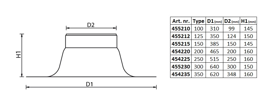 Een plakplaat zorgt voor een water- en luchtdichte afsluiting van het plat dak. De dakdoorvoer plat dak zorgt ervoor dat regenwater niet via onderliggende ventilatiegaten het ventilatiekanaal in komt.